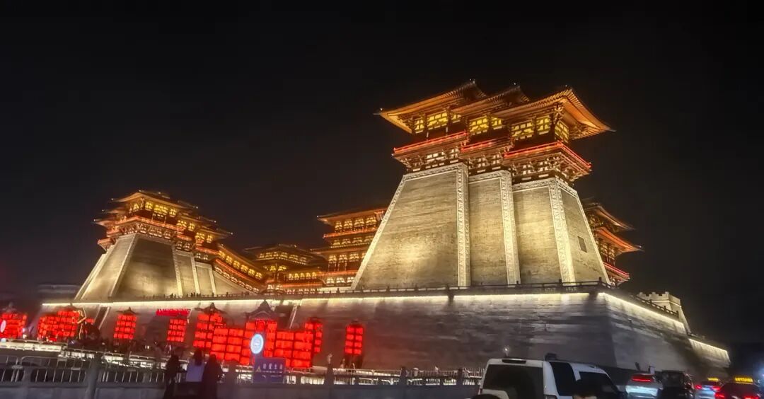 下午五点多我们乘电梯上到六楼的紫微宫观景层。傍晚时分,夕阳洒在洛阳城的屋顶与街巷,远处的洛河如一条金色丝带蜿蜒流过。六点后,应天门灯光亮起,整座建筑在夜色中显得庄严而华丽。站在观景台上,我想象着隋唐时期的洛阳——不仅是政治中心,更是国际都会,丝绸之路的东方起点。商旅云集,驼铃声声,不同肤色、不同语言的人们在这里交换货物、交流思想。应天门不仅是一座建筑,更是一种象征——它见证了帝国的兴衰,也见证了文明的交融。
