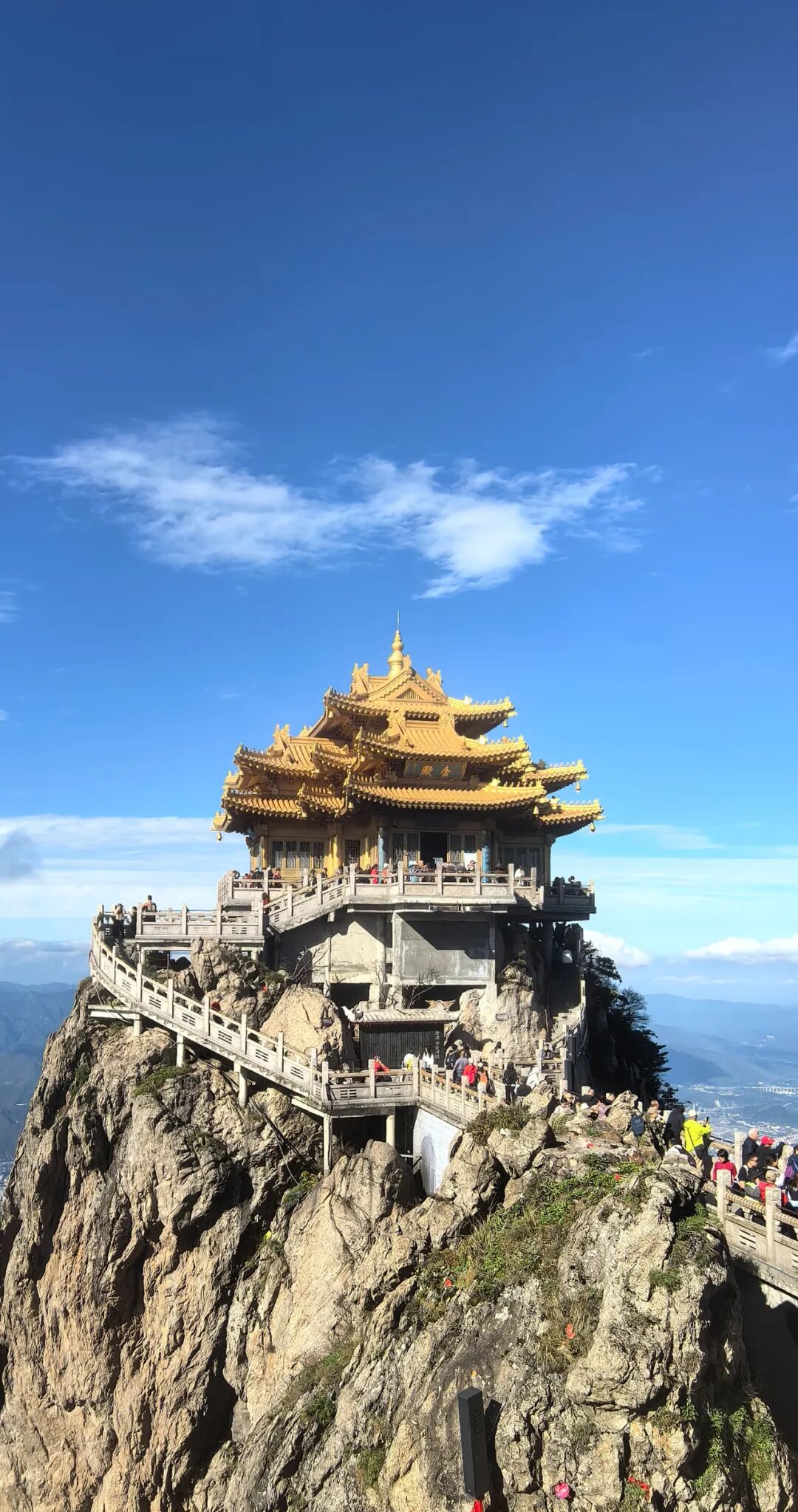 金顶三座道观的铜瓦在阳光下熠熠生辉,云海在群峰间翻滚。站在会仙桥上,仿佛伸手便能触到天上的云彩。那一刻,我忽然明白,旅行和绘画一样,重要的不是留下影像,而是将那一刻的心境深深烙印在记忆中。