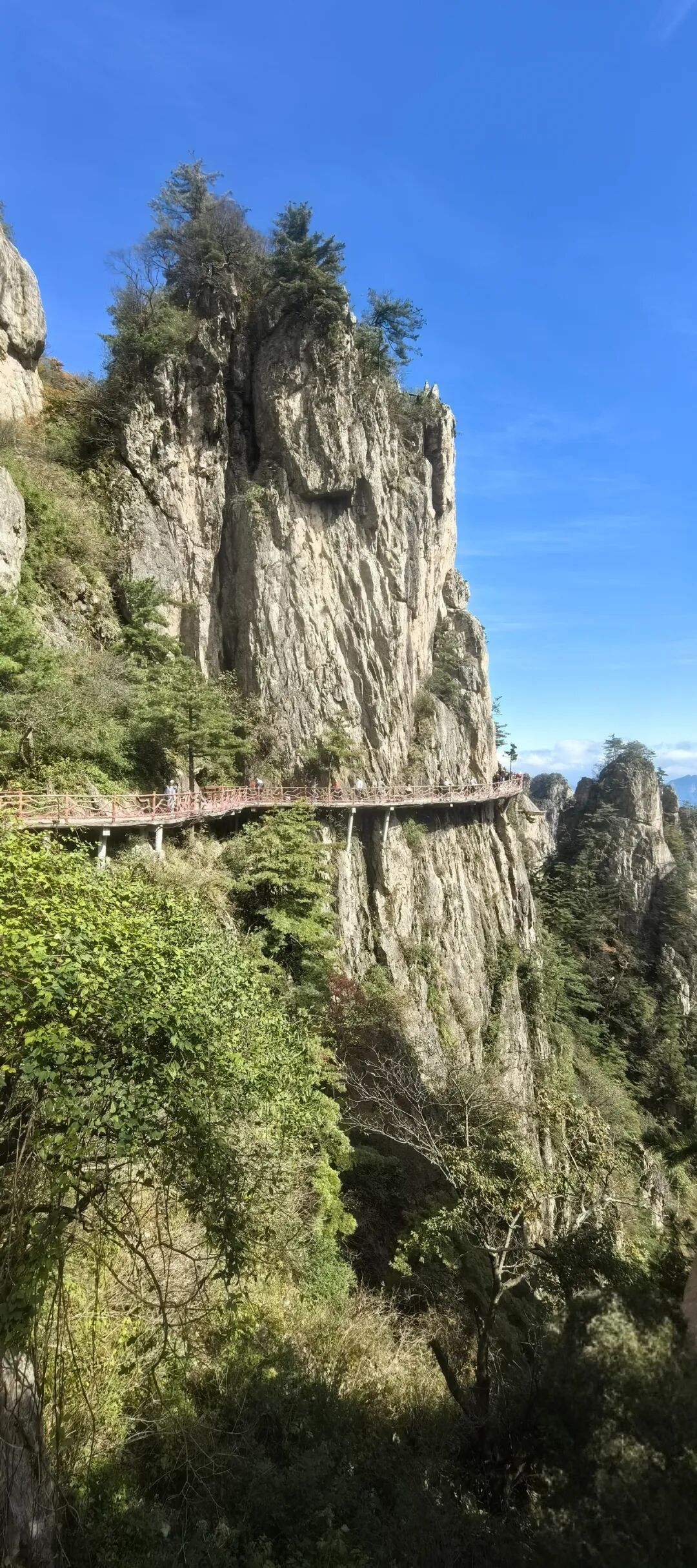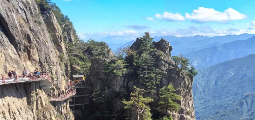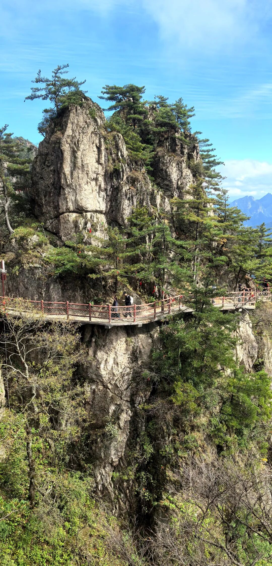 景区门口的牌坊上写着“天下无双圣境,世界第一仙山”,气势非凡。我们选择乘索道上山,节省体力。缆车缓缓上升,脚下的山谷被云海吞没,仿佛置身仙境。山顶的栈道并不算好走,尤其是“十里画屏”一段,紧贴悬崖,脚下是数十米深渊。据说,这里的山体属于十九亿年前形成的太华群变质岩,经过漫长地质作用,形成了如今刀削斧劈般的峰林地貌。