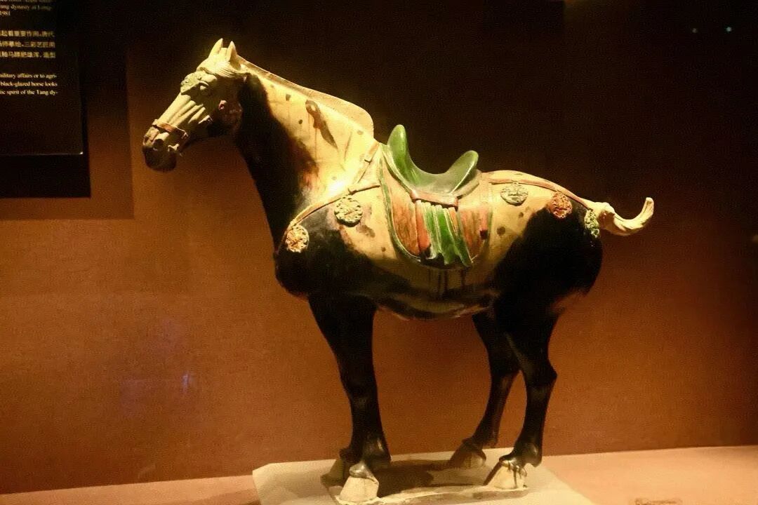 二楼的珍宝馆汇聚了洛阳博物馆的镇馆之宝,令人大开眼界。正在展出的十几件镇馆之宝其精美程度在地方博物馆中是很少见的。其中唐三彩黑釉马尤为罕见,通体施黑釉,仅面部、鬃毛、尾巴及四蹄为白色,黑白对比鲜明,全球仅存两件,代表了唐三彩艺术的巅峰工艺;还有曹魏白玉杯,以和田羊脂玉雕琢而成,体现魏晋简约美学,出土于涧西曹魏墓,玉质温润,工艺精湛。