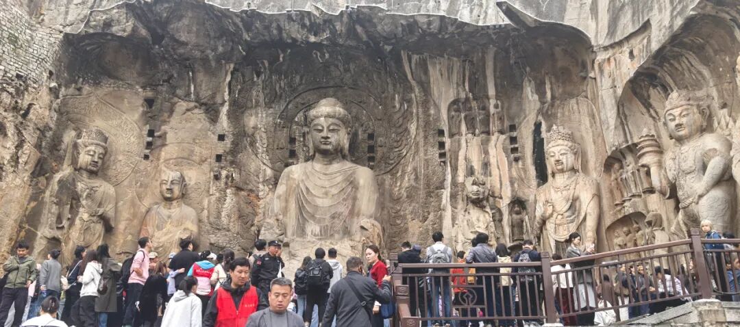 最后一天,我们来到龙门石窟。这里开凿于北魏时期,历经东魏、西魏、北齐、隋、唐等朝代,延续四百余年,现存窟龛2300多个,造像10万余尊。